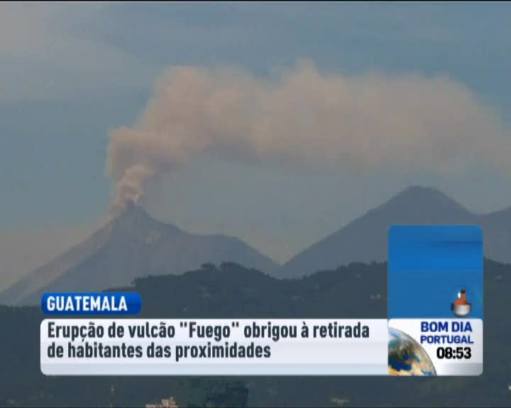 Na Guatemala, o Vulcão "Fuego" entrou em erupção e está a expelir fumo e lava. O vulcão localiza-se perto da cidade turística de Antiqua e é um dos mais ativos da América Central. De acordo com as autoridades as colunas de fumo e cinzas podem vir a atingir 1500 metros de altitude. As populações locais não receberam ordem para abandonar as casas, mas há um alerta para a aviação.