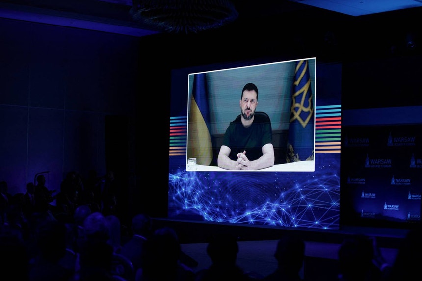 "A Ucrânia propõe à Polónia e a todos os nossos parceiros a construção de um escudo conjunto totalmente fiável contra as ameaças aéreas russas", disse num discurso no Fórum de Segurança de Varsóvia, transmitido por videoconferência.
