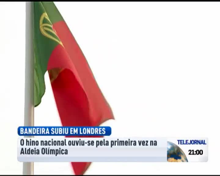 A bandeira de Portugal foi hasteada hoje na aldeia olímpica às 19:25 horas ao som do hino nacional, cantado de viva voz pela comitiva de atletas e assistentes.
