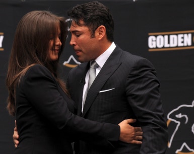 Um Óscar De la Hoya emocionado e acompanhado pela sua bela mulher, Millie Corretjer, anunciou o fim da sua carreira de 17 anos.