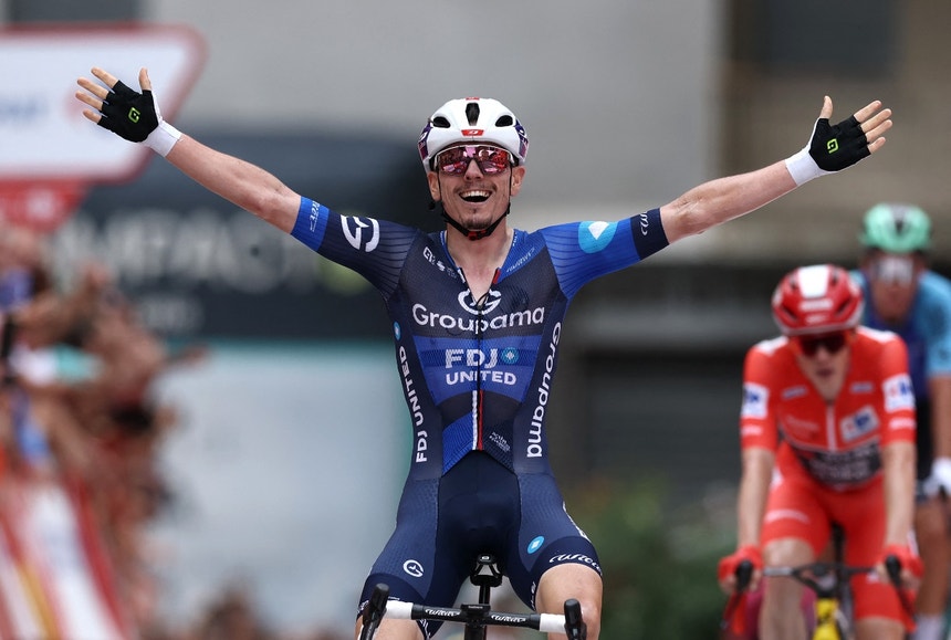 Vuelta: David Gaudu ‘fintou’ Mads Pedersen na última curva para vencer terceira etapa