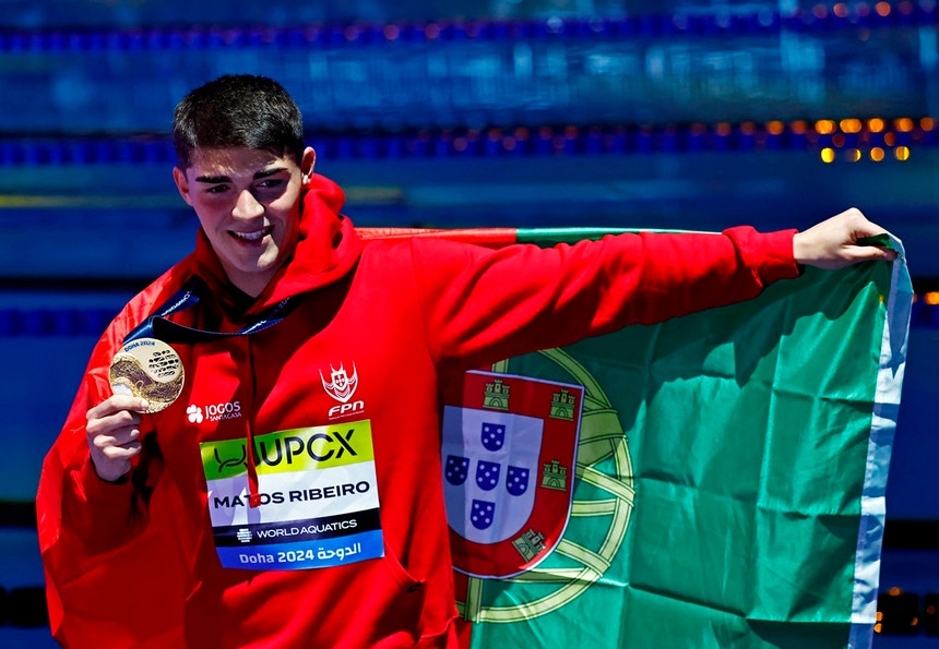 O nadador português Diogo Ribeiro conquistou a medalha de ouro na prova de 50 metros mariposa nos Mundiais de natação, que estão a decorrer em Doha.