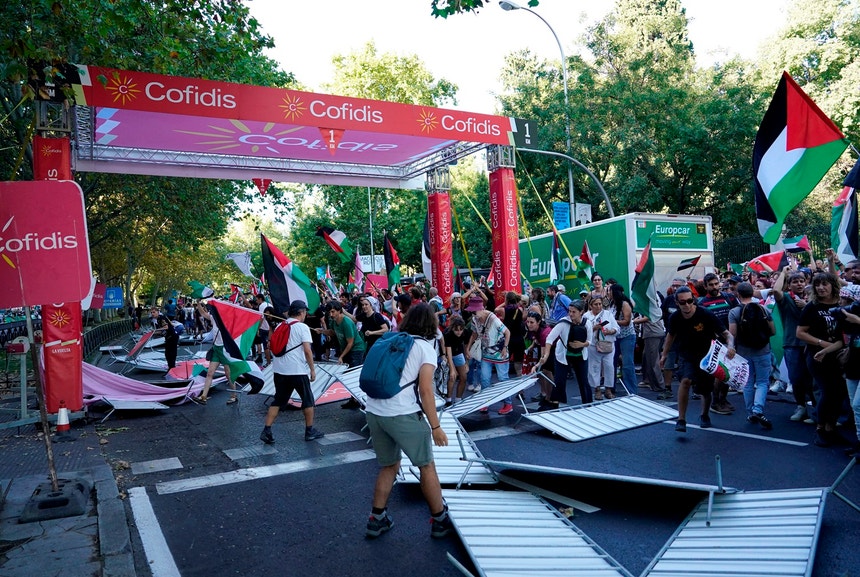 No domingo, milhares de manifestantes pró-Palestina invadiram o circuito final da 21.ª e última etapa da prova espanhola e ‘travaram’ o pelotão a 56 quilómetros da meta, em protesto contra a presença da equipa Israel-Premier Tech.