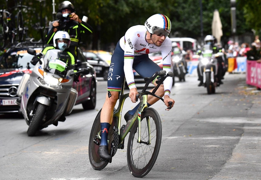 O recente campeão do mundo de `crono` gastou 15.24 minutos para completar os 15,1 quilómetros entre Monreale e Palermo, menos 22 segundos do que Almeida e do que Mikkel Bjerg (UAE-Emirates).
