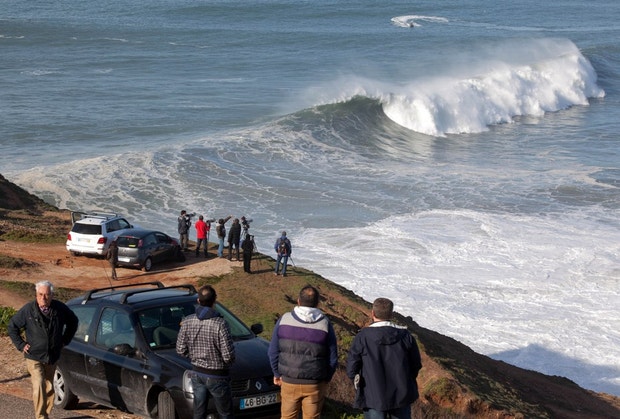 De mais perto vieram Isabel Isidoro e Nuno Florença, um casal das Caldas da Rainha avisados pelos amigos de "que as ondas grandes andam aí a rebentar".