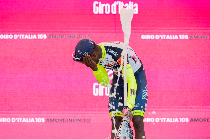 O ciclista Biniam Girmay (Intermarché-Wanty-Gobert Matériaux) foi hoje levado ao hospital após vencer a 10.ª etapa da Volta a Itália em bicicleta, por ter acertado com uma rolha de espumante num olho, quando estava no pódio em Jesi.