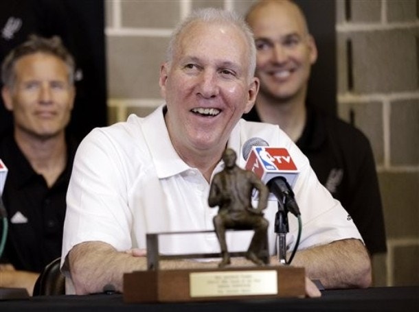 O treinador, desde 1996 à frente da equipa texana, e o mais antigo de uma equipa da NBA, recebe este galardão pela segunda vez na carreira, repetindo o feito de 2003, quando ganhou o segundo de quatro títulos da NBA.