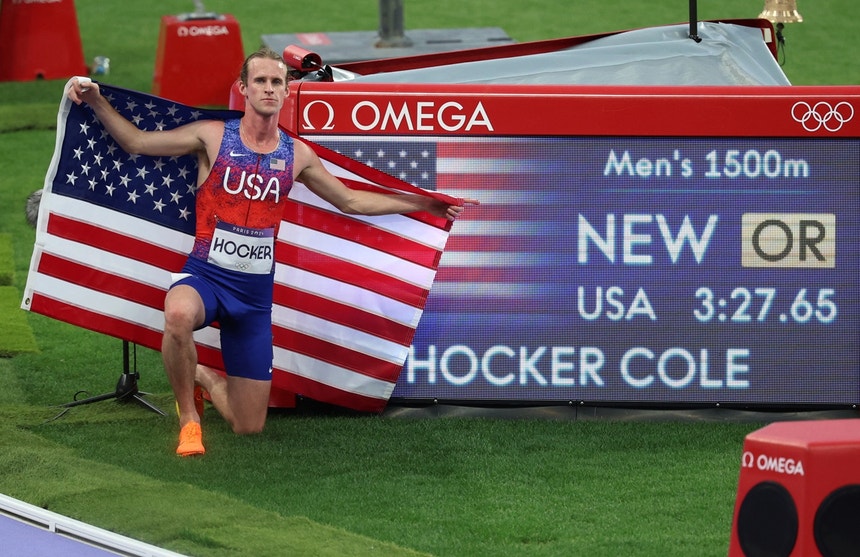 Cole Hocker, de 23 anos, tinha sido sexto em Tóquio2020 e sétimo nos Mundiais Budapeste2023.