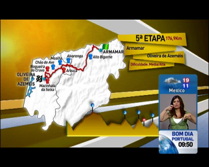 Nesta quinta etapa, Armamar, a outra cidade debutante na Volta a Portugal, depois de Vila Nova de Cerveira, inicia um dia aparentemente tranquilo, com final 176,9 quilómetros depois em Oliveira de Azeméis, que, a não ser pelo cansaço já acumulado, deve voltar a servir para os ciclistas mais rápidos se mostrarem.