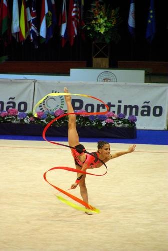 Perante cerca de 3.000 espectadores, que encheram por completo o Pavilhão Arena, em Portimão, a ginasta portuguesa classificou-se na 8.ª posição na final de arco, totalizando 22,775 pontos, e na 9.ª, em fita, com 28,050.