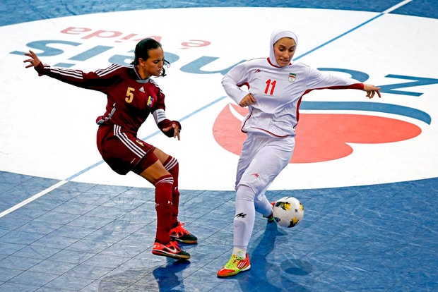 Iranianas de véu no torneio de salão