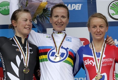 a neo-zelandesa Linda Villumsen a 21 segundos e a britânica Emma Pooley