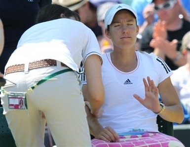 A tenista belga lesionou-se no encontro com a sua compatriota Kim Clijsters, nos "oitavos" de Wimbledon