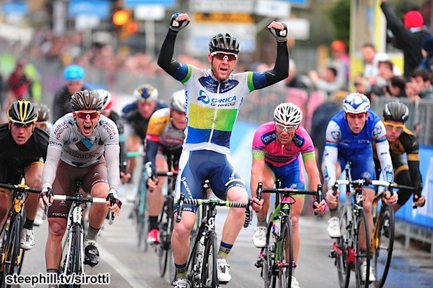 Matthew Goss surpreendeu tudo e todos, ganhando, ao sprint, a segunda etapa, primeira em linha, da Tirreno-Adriatico, entre San Vincenzo e Indicatore, 232Km para roladores.