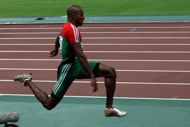 À terceira tentativa, Nélson Évora, campeão do Mundo ao ar livre, saltou