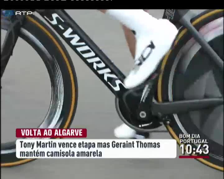 O alemão Tony Martin venceu o contra-relógio individual da Volta ao Algarve em bicicleta. O corredor da Etixx-QuickStep cumpriu os 19 quilómetros em 21 minutos e 52 segundos. O camisola amarela Geraint Thomas fez o terceiro melhor registo, com mais 3 segundos, mas mantém a liderança da prova. Hoje, os ciclistas percorrem a etapa rainha entre Tavira e o Alto do Malhão, numa distância de 218 quilómetros. Geraint Thomas parte para a etapa decisiva com meio minuto de avanço sobre Tony Martin, na classificação geral.