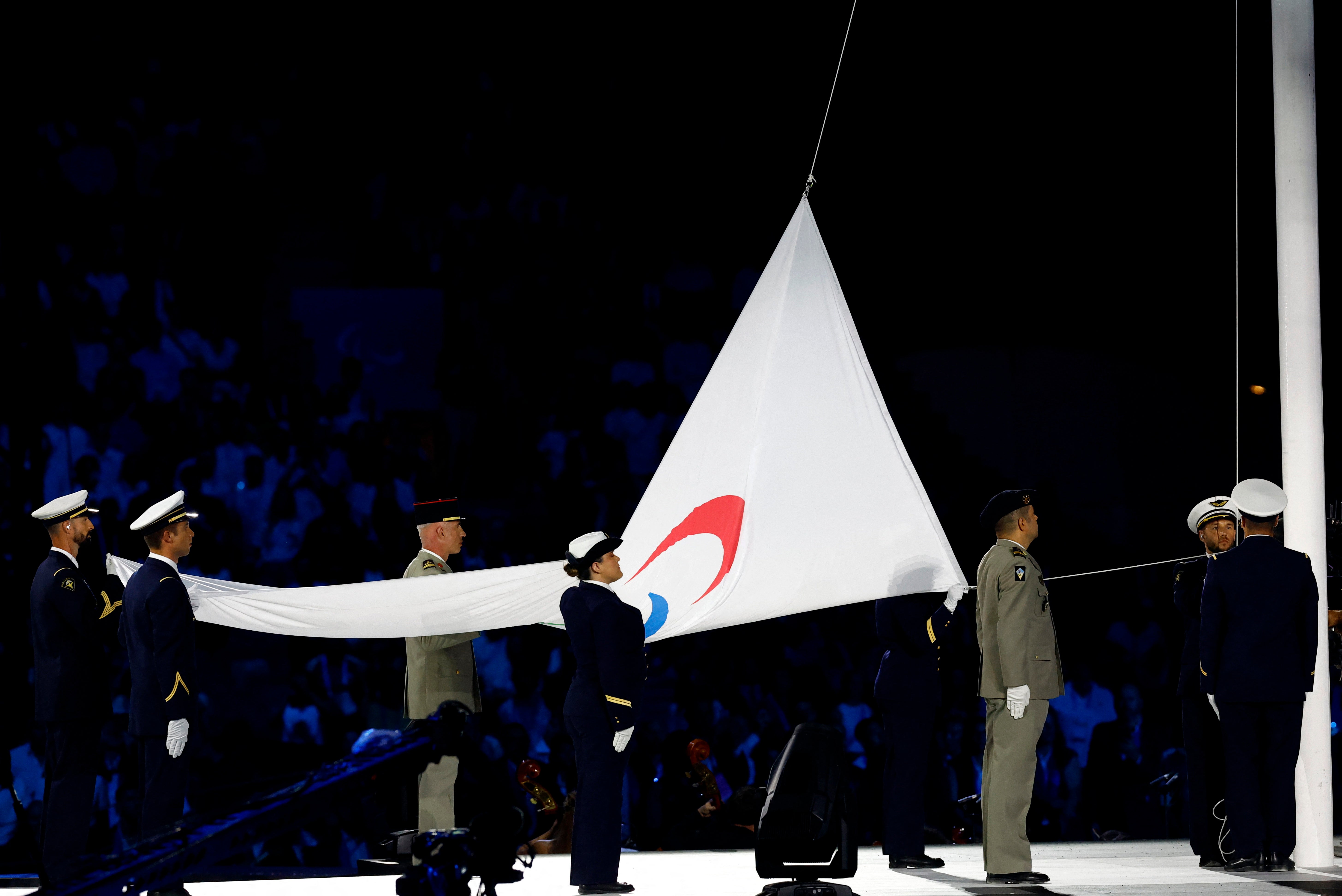 A bandeira paralímpica chegou ao centro da festa pelas mãos do antigo atleta paralímpico John McFall, medalhado em Pequim2008, e o primeiro astronauta com deficiência a ingressar na Agência Espacial Europeia, imediatamente antes de o hino paralímpico ecoar na Concórdia.