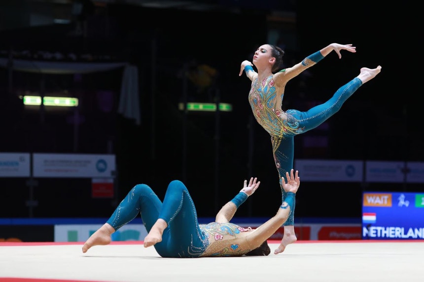 O Par Feminino composto pelas ginastas Rita Ferreira e Rita Teixeira foi o mais forte no exercício combinado na Arena Milli Gimnastika, com 28.780 pontos, batendo a Hungria, com 26.950, e o Cazaquistão, com 26.790, que completaram o pódio.