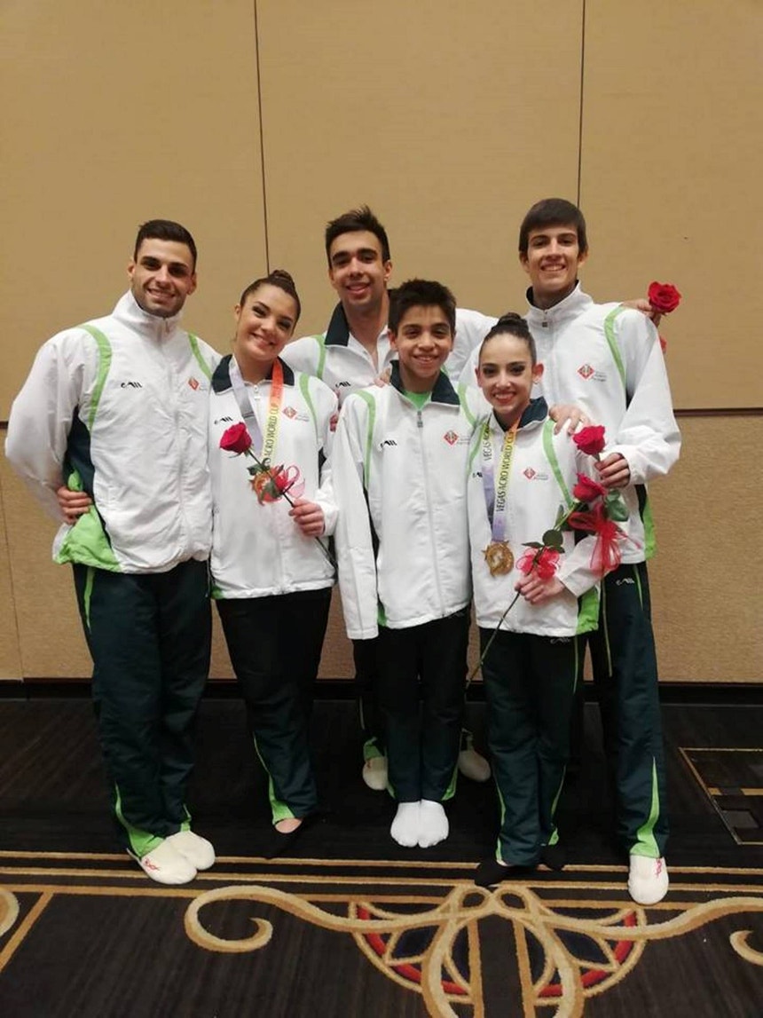 Portugal conquistou no domingo duas medalhas, uma de ouro, em pares femininos, e outra de prata, no grupo masculino, na segunda etapa da Taça do Mundo de ginástica acrobática, realizada em Las Vegas, nos Estados Unidos.