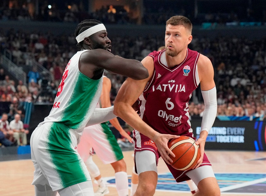 Porzingis, poste dos Atlanta Hawks, esteve intratável nos primeiros dois quartos da partida e cedo colocou a Letónia em vantagem.