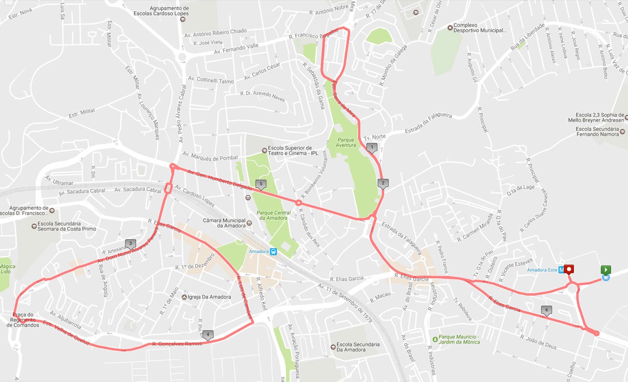 Com um percurso de 10 quilómetros pelas principais artérias da cidade, a corrida parte da Estrada dos Salgados, junto à estação de metro Amadora Este, e termina na Praça São Silvestre, onde os atletas são consagrados.