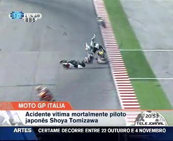 O Grande Prémio de São Marino de motociclismo ficou marcado pela morte do japonês Shoya Tomizawa, vítima de um grave acidente durante a prova de Moto 2. O piloto, de 19 anos, sofreu o acidente na 12ª volta, quando seguia na quarta posição, tendo sido atingido pelas motos de Alex de Angelis e de Scott Redding, que saíram ilesos do acidente. Shoya Tomizawa ainda foi transferido para o hospital, mas o jovem piloto não resistiu aos múltiplos traumatismos no tórax, abdómen e no crânio.