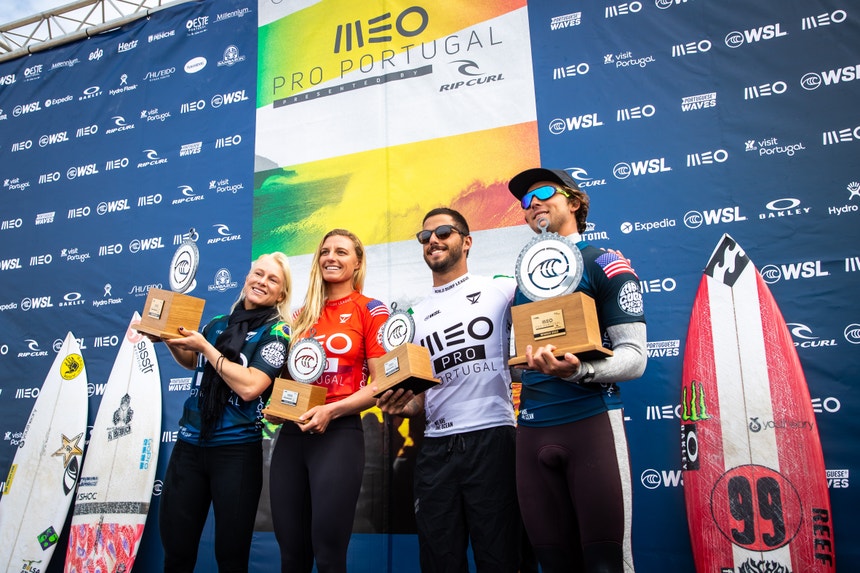 Os surfistas Tatiana Weston-Webb, do Brasil, e Griffin Colapinto, dos Estados Unidos, venceram esta segunda-feira o Meo Pro Portugal, etapa portuguesa do circuito principal da Liga Mundial de Surf (WSL), na Praia de Supertubos, em Peniche.