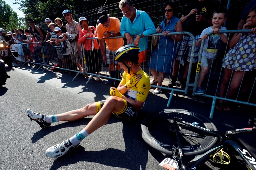 Chris Froome (Sky), atual líder do Tour, abdicou de envergar a camisola amarela na etapa de hoje, homenageando assim o seu colega de profissão, que já foi campeão mundial de contrarrelógio em três ocasiões.