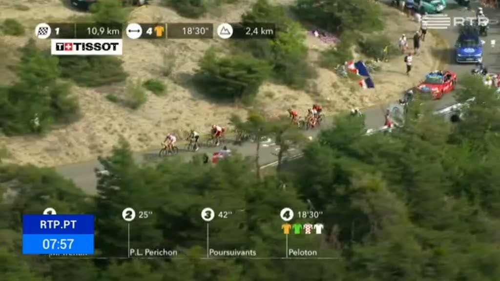 Na liderança da corrida está Julian Alaphilippe da Quick-Step com 1m35s de vantagem sobre o segundo classificado Geraunt Thomas, da Ineos, e 1m47s de vantagem sobre o terceiro que é Steven Kruijswijk, da Jumbo Visma.