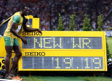 O jamaicano tinha ganho os 100 metros com o registo de 9,58 segundos, e agora correu a final dos 200 em 19,19 segundos.