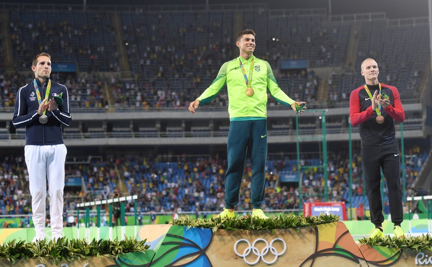 Vaiado pelo público no Estádio Engenhão, o recordista mundial e medalha de prata foi às lágrimas no pódio, motivando um gesto de incompreensão do novo campeão olímpico, o brasileiro Thiago Braz. Lavillenie, com a medalha ao pescoço, deixou o recinto incomodado e dirigiu-se para uma pequena sala localizada por baixo da tribuna principal, onde Bach, entre outros, o foi consolar.