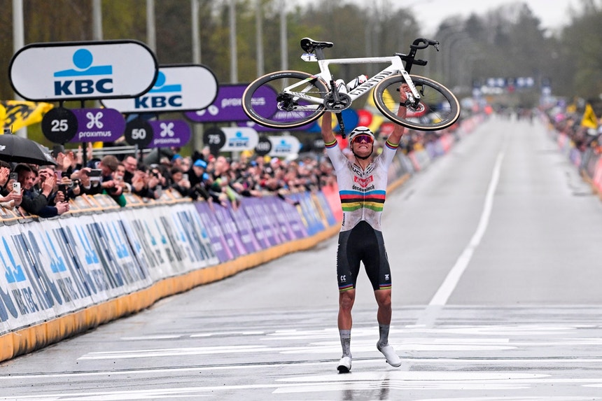 As várias baixas provocadas pela queda grave ocorrida na quarta-feira na Através da Flandres deixaram o ciclista neerlandês da Alpecin-Deceuninck como destacado favorito ao triunfo no final dos 270,8 quilómetros entre Antuérpia e Oudenaarde e, hoje, o campeão mundial de fundo não dececionou, isolando-se a 45 quilómetros da meta, que cortou com o tempo de 06:05.17 horas