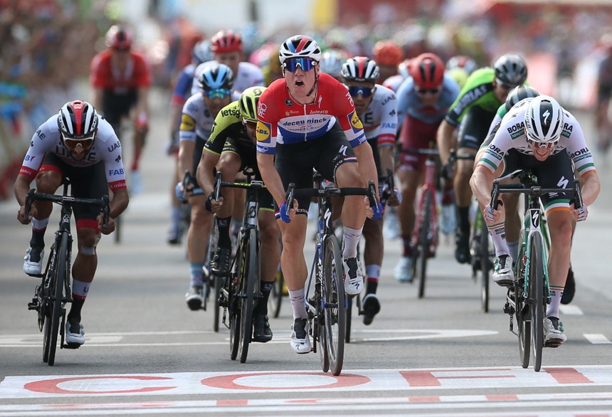 Após anulada a fuga, Jakobson foi o mais forte sobre a meta, ganhando pela primeira vez numa `grande volta`, à frente do irlandês Sam Bennett (Bora-Hansgrohe) e do alemão Maximilian Walscheid (Sunweb).