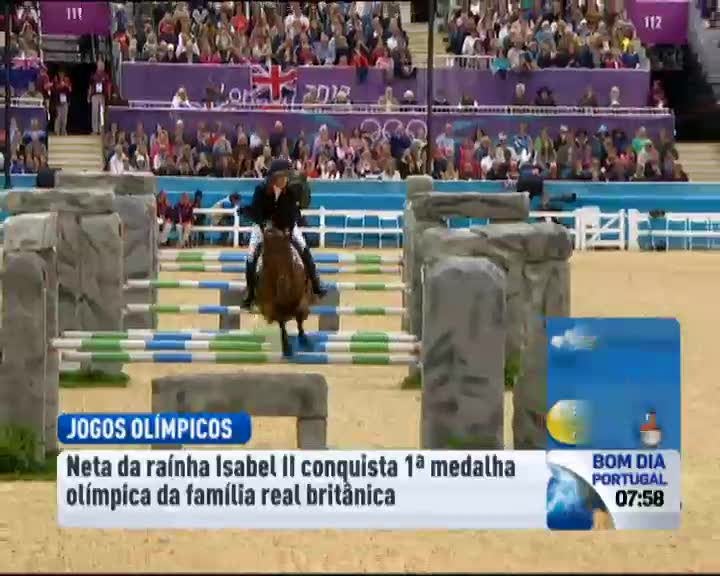 A neta da rainha Isabel II conquistou a primeira medalha olímpica da família real britânica. Zara Phillips integra a equipa da Grã-Bretanha que chegou à prata no Hipismo. Os príncipes William e Harry e a duquesa de Cambridge, Kate Middleton assistiram à prova onde estiveram também a princesa Anne, mãe de Zara, e Camilla Parker Bowles, a segunda mulher do príncipe Carlos. Só faltou mesmo a rainha.