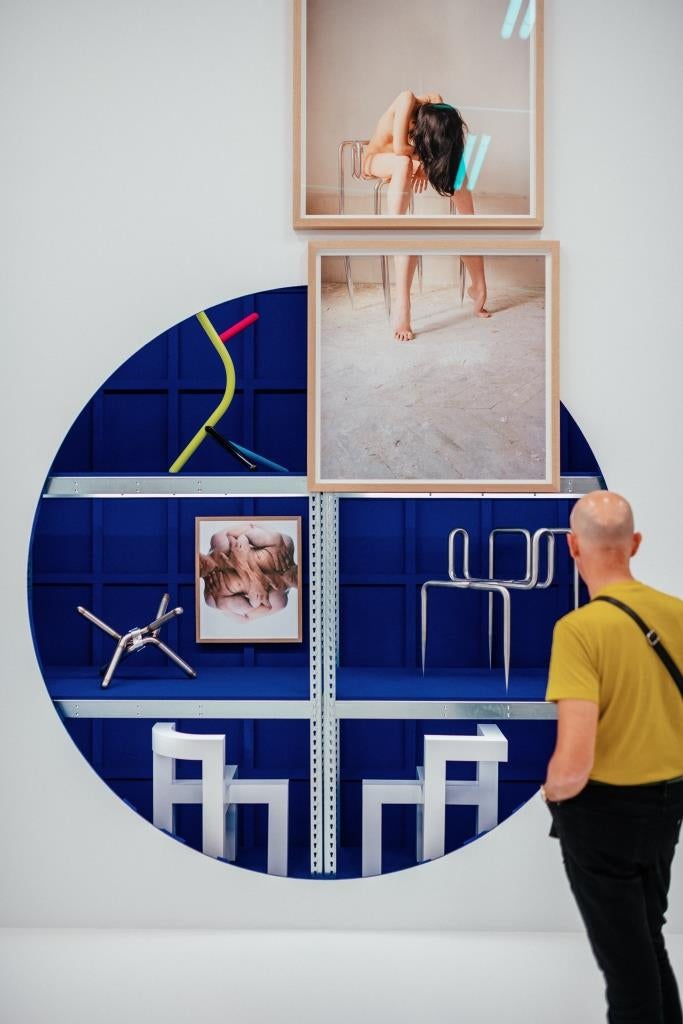 Naquele pequeno espaço cabe apenas uma pessoa, sentada. E, lá de cima, quem se atrever a subir terá a possibilidade de observar toda a movimentação das pessoas que por ali passam, bem como a reação das mesmas às peças expostas.