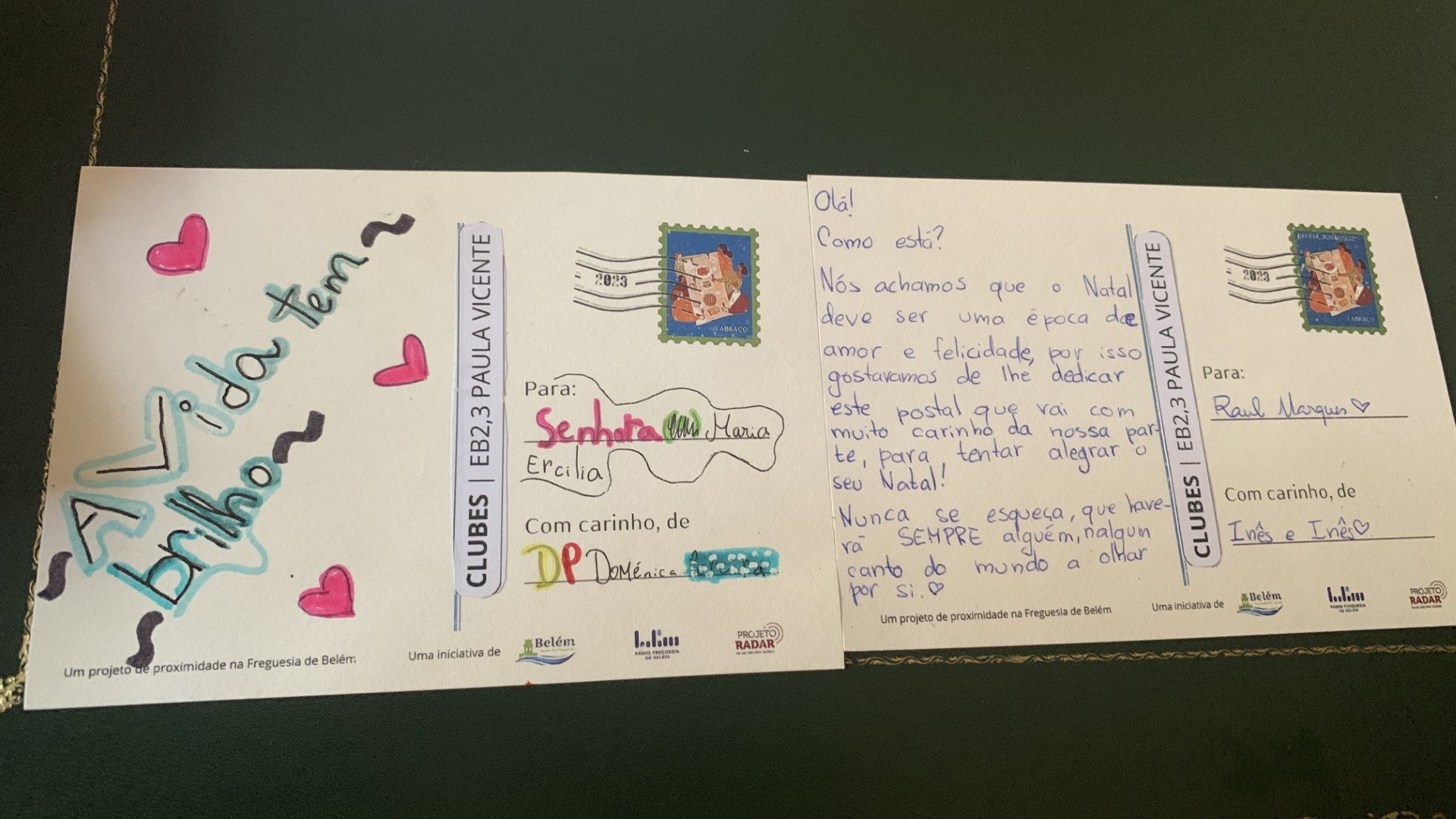 "Um postal igual a um abraço" é uma iniciativa de proximidade da Junta de Freguesia de Belém com o Projeto RADAR que apoia idosos com mais de 65 anos em Lisboa e com o Agrupamento de Escolas do Restelo.