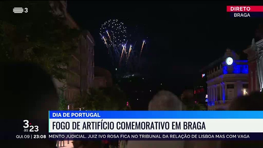 O fogo do artifício a partir do Monte do Picoto é o último momento desta quinta-feira, no âmbito das comemorações do Dia de Portugal. O presidente da República também assistiu a um concerto com as três bandas das Forças Armadas e o coro académico da Universidade do Minho.