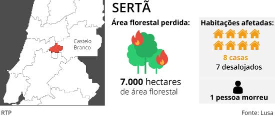 Na Sertã, várias pessoas foram retiradas das aldeias de Ermida e Figueiredo. José Nunes, presidente da Câmara, afirmava que “o fogo havia tomado grandes proporções, propagando-se a grande velocidade".