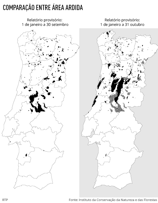 “Os distritos mais afetados são os de Aveiro com 56, Braga com 38, Coimbra com 25, Porto com 120 incêndios e o distrito de Viseu com 36”, salientou Patrícia Gaspar.