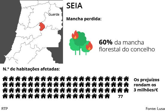 O presidente da Câmara de Seia, Carlos Filipe Camelo, apontava “mão humana” como a causa do incêndio que tinha deflagrado de madrugada no Sabugueiro. No concelho, as chamas destruíram o pavilhão de uma empresa têxtil.