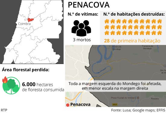 No concelho arderam mais de 100 casas de primeira habitação. Durante a noite centenas de pessoas passaram a noite no pavilhão municipal. O autarca fala ainda de um grande prejuízo para as empresas da região. “Perto de quatro centenas de postos de trabalho perderam-se”. Poucas horas depois é confirmado.