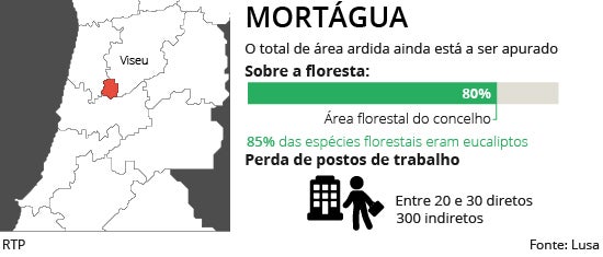 Também a Câmara de Mortágua, onde centenas de postos de trabalho foram perdidos e várias casas ficaram destruídas, criou um gabinete de crise para resolver os problemas provocados pelas chamas. O concelho de Mortágua tinha 80 por cento da sua área coberta por floresta, 85 por cento da qual era de eucaliptos, um cenário que mudou depois dos últimos incêndios.