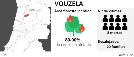 Em Vouzela, o presidente da Câmara fala em prejuízos entre os 10 e os 20 milhões de euros. Em entrevista à Antena 1, Rui Ladeira afirmava que tinha ardido entre 70 a 80 por cento do concelho.
