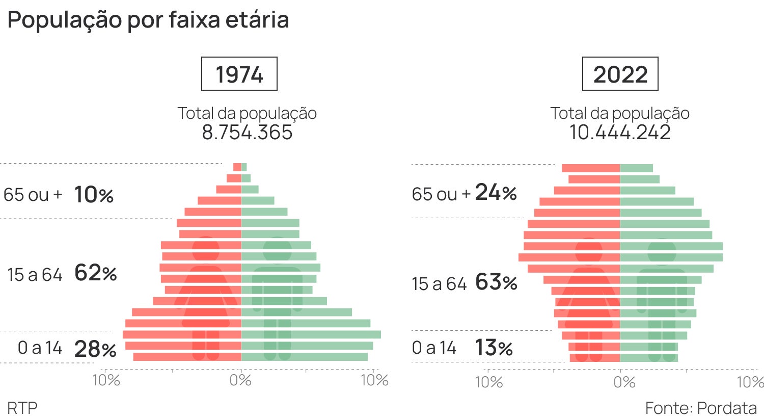 Por outro lado, em 1974, as crianças até aos 14 anos eram quase um