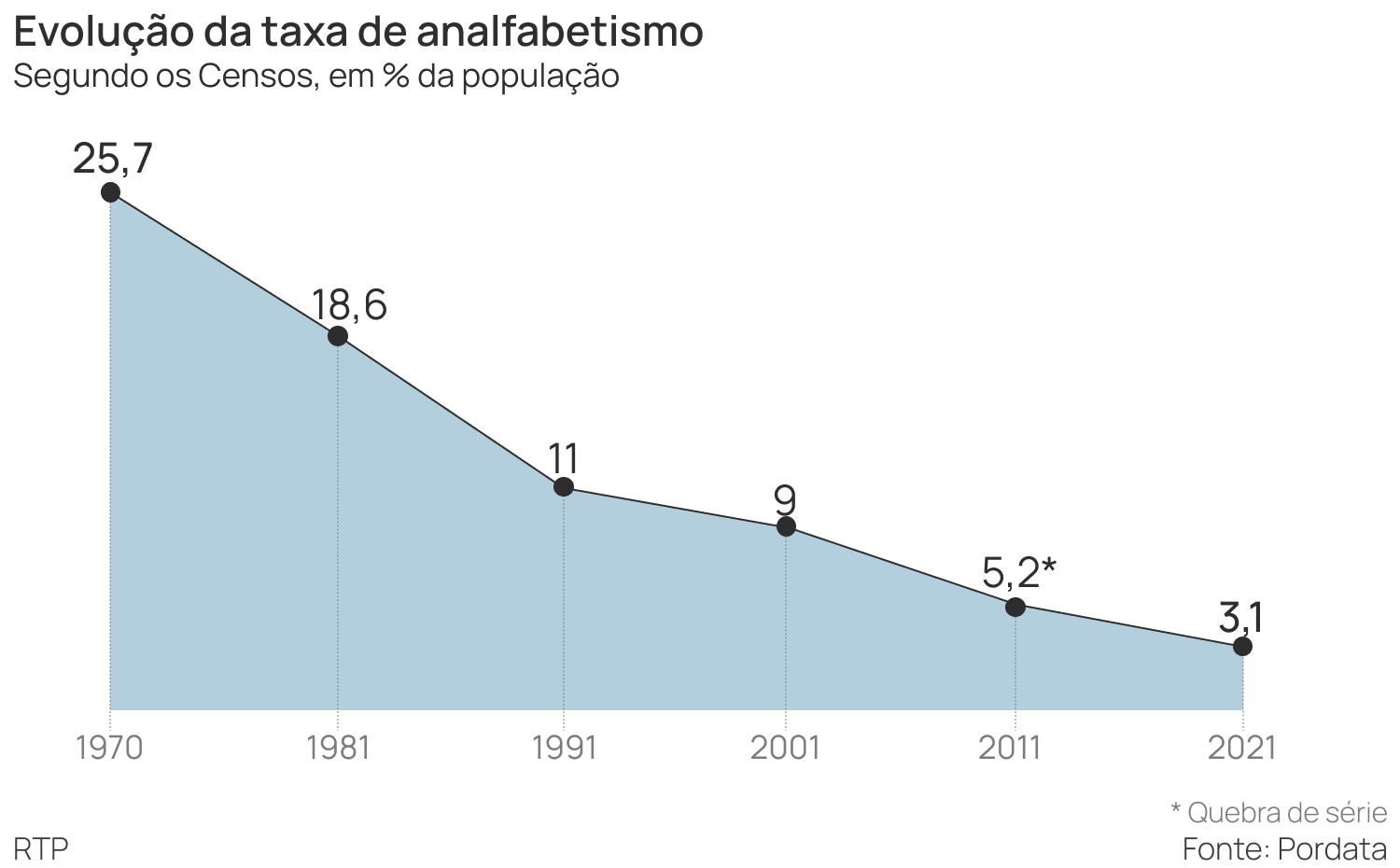 Em 1970, um em quatro português era analfabeto, o que correspondia a 1,8 milhões de pessoas (das quais 64% eram mulheres).