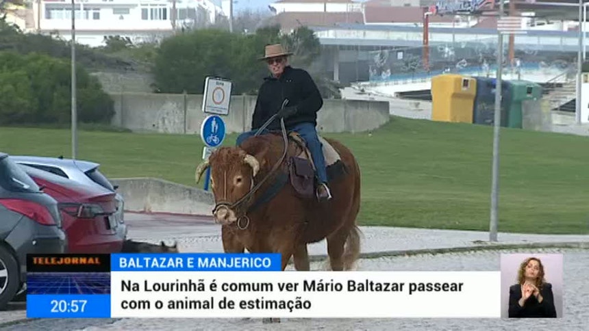 Um homem e um boi de estimação com mais de uma tonelada passeiam diariamente na Lourinhã. Mário Baltazar salvou o boi Manjerico da morte e, a partir daí, ficaram inseparáveis.