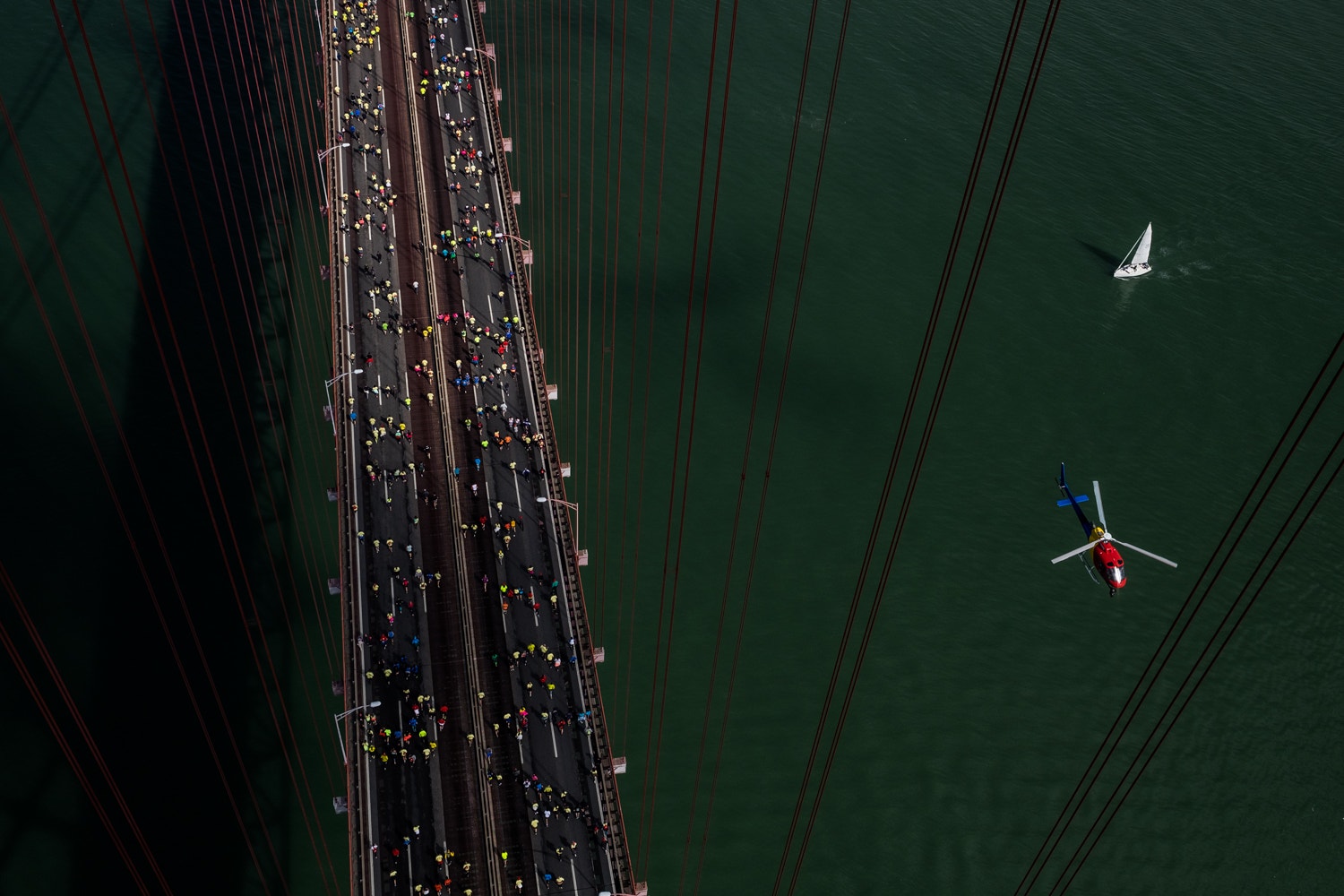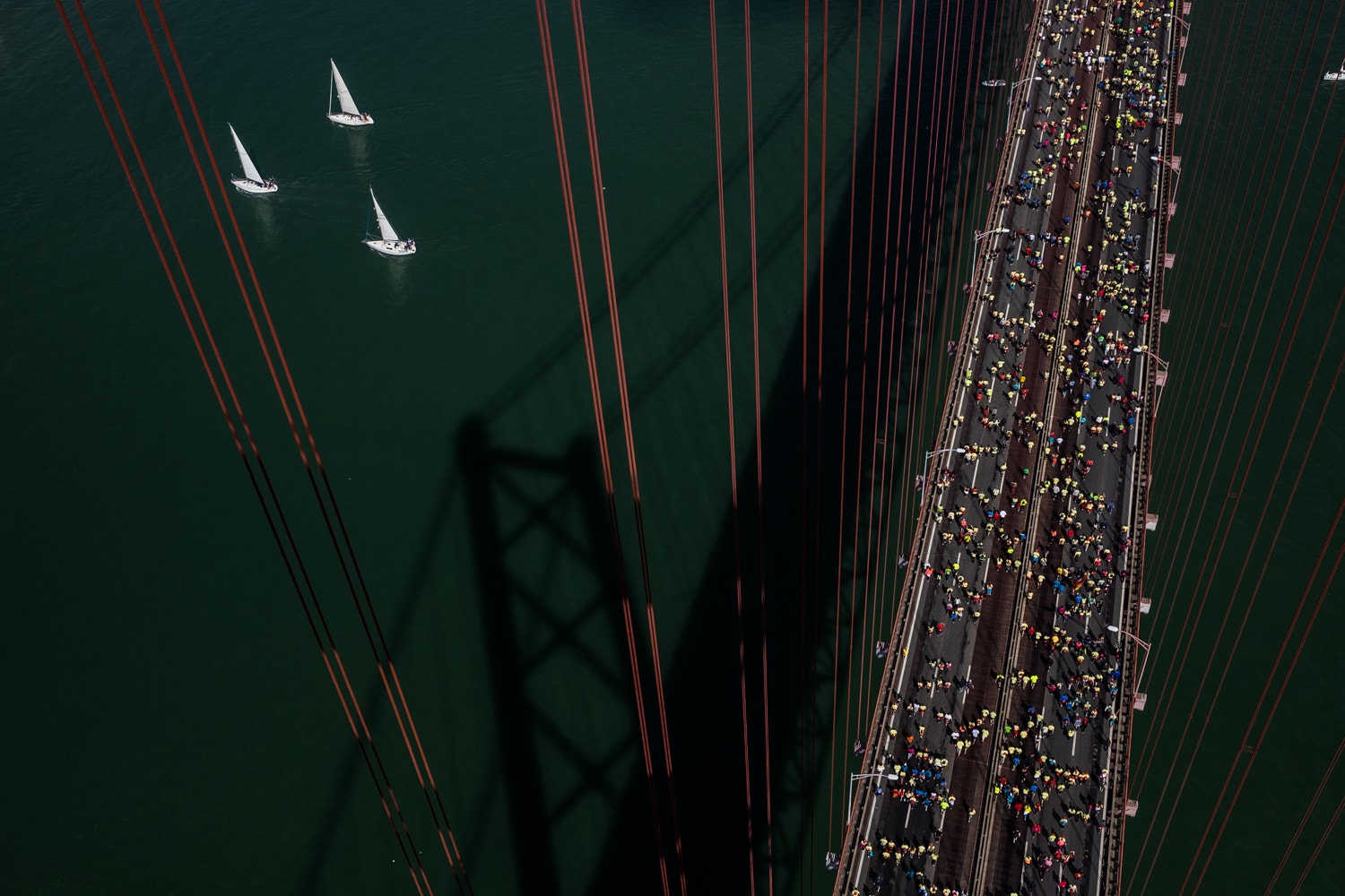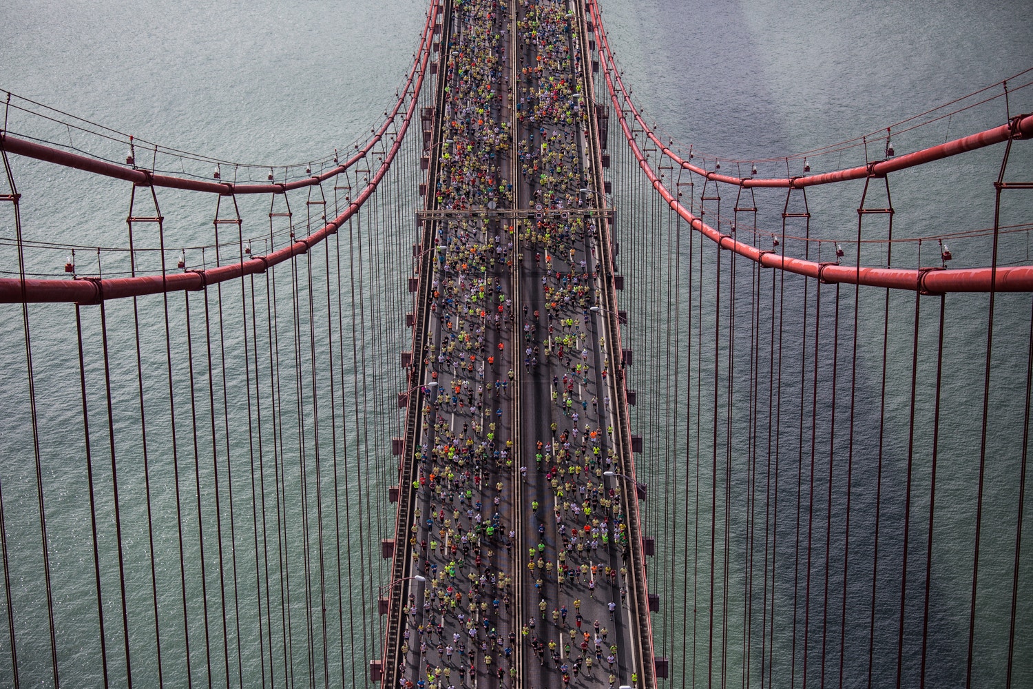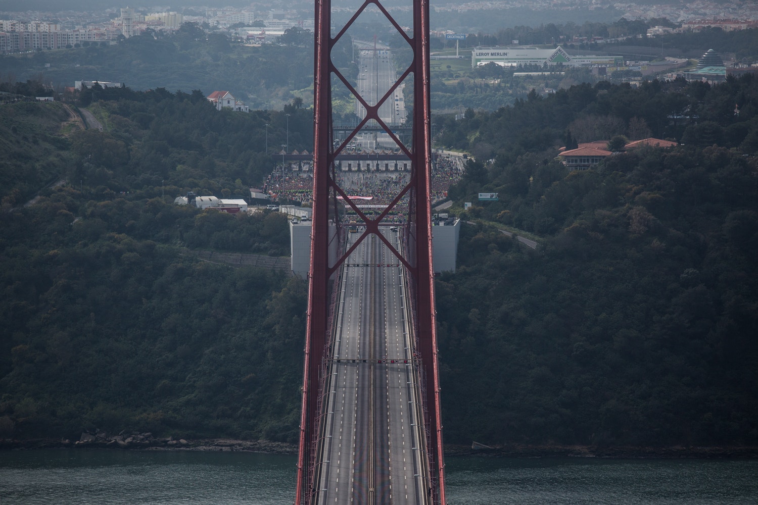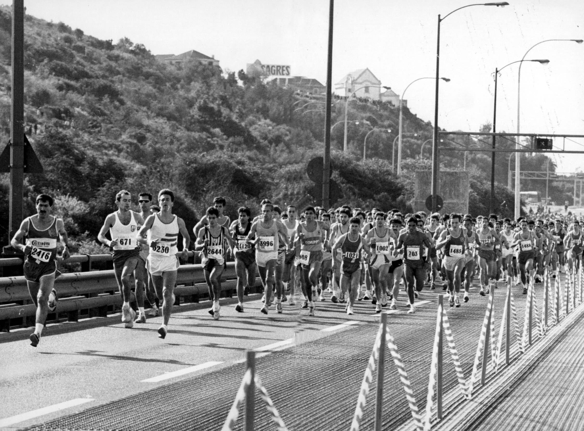 Desde 1991 que é possível, uma vez por ano, atravessar a Ponte 25 de Abril a pé. Foi nesse ano que se realizou a primeira edição da meia-maratona de Lisboa, uma prova de atletismo sob a alçada da IAAF (Associação Internacional de Federações de Atletismo), e cujo ponto de partida é na praça das portagens da ponte, na margem sul do Tejo.