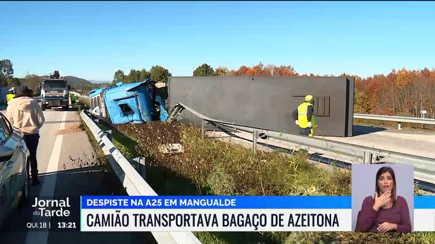 A25 teve de ser cortada com despiste de pesado de mercadorias