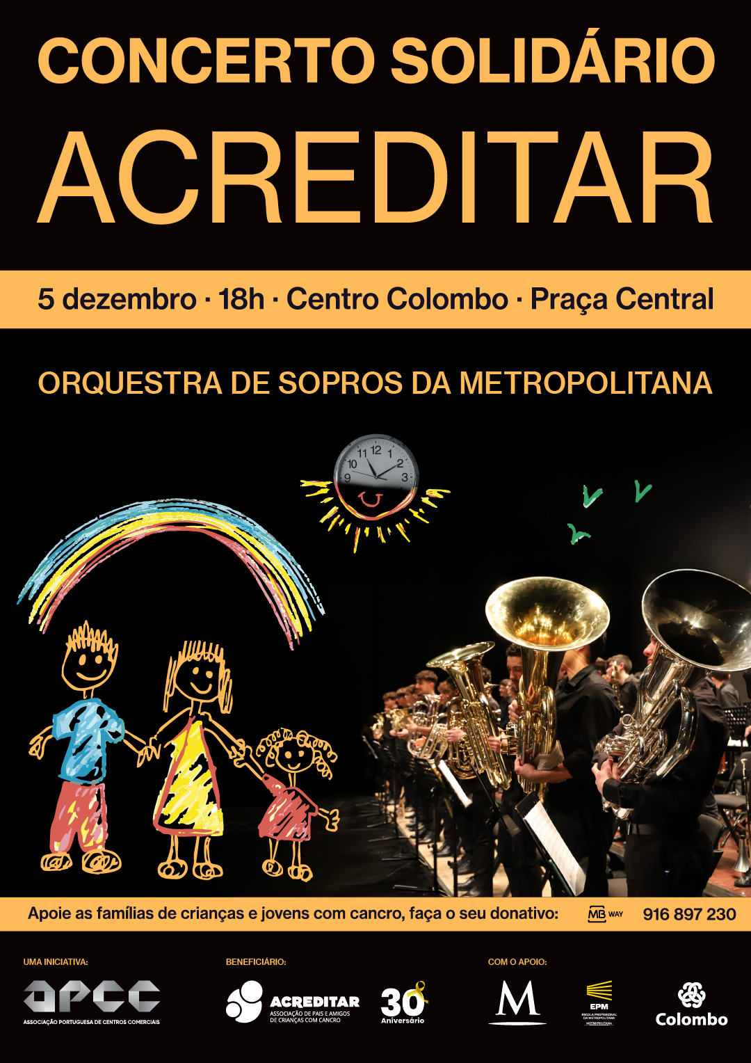 A campanha terá início na praça central do Centro Colombo, às 18h00, com o concerto da Orquestra de Sopros da Metropolitana, onde será entregue à Acreditar os donativos da APCC e dos seus associados.
