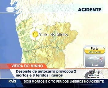 Duas pessoas morreram e oito ficaram feridas como resultado de um acidente com um autocarro que se despistou esta madrugada na zona de Vieira do Minho, no distrito de Braga. O mau tempo que se registava na altura do acidente com queda de neve esteve na origem do capotamento na via do autocarro que tinha como destino Portalegre.